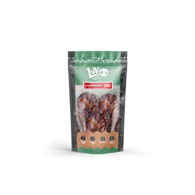O Hamburguinho Bovino 100g é um petisco natural feito de máscara bovina desidratada, moldado no formato de hamburguinho com aproximadamente 5 cm de diâmetro. Esse formato facilita a mastigação, tornando a brincadeira mais envolvente e saborosa para o seu cão.