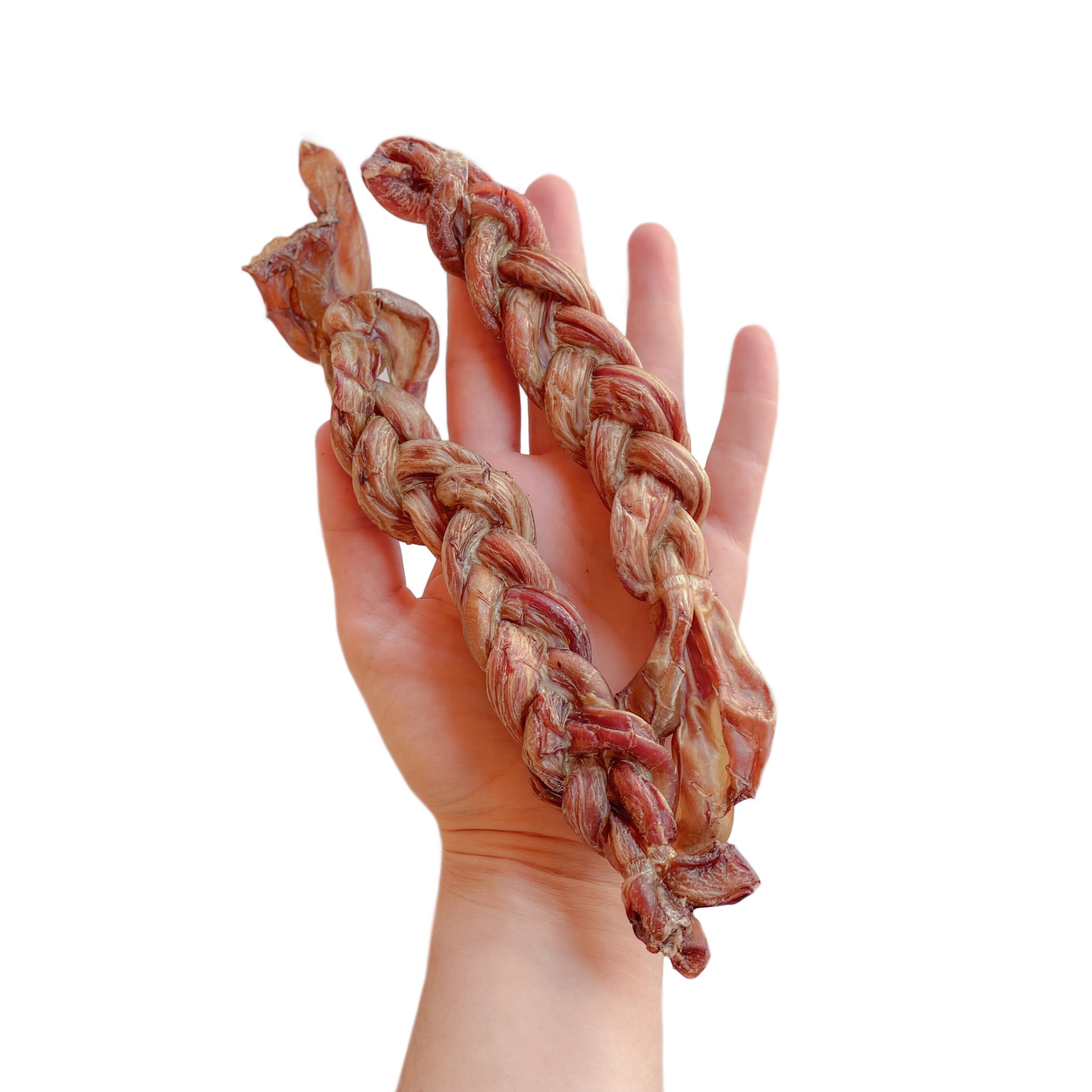 O Vergalho de Carneiro Desidratado é um petisco natural feito a partir do vergalho ovino, cuidadosamente trançado para oferecer mais textura e diversão na mastigação. Por ser de uma proteína de menor porte que o bovino, possui baixa rigidez, tornando-se ideal para cães de porte pequeno e filhotes que estão começando sua jornada com mastigáveis.